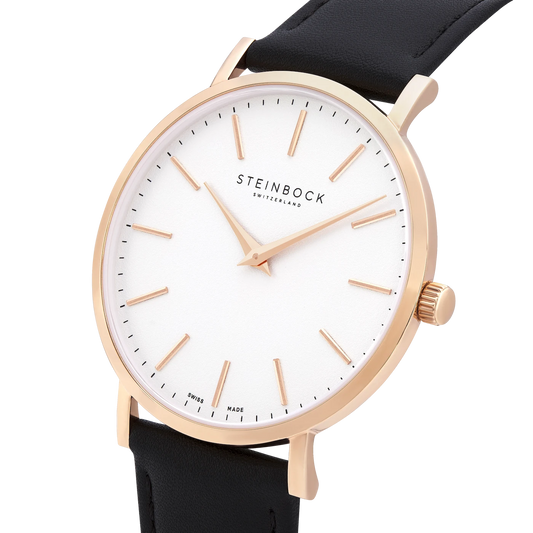 The IBEX | Rose Gold Weiss Edition mit veganem Lederarmband (PETA zertifiziert)