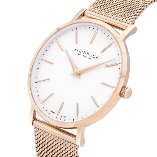 The IBEX | Rose Gold Weiss Edition mit Edelstahl Armband