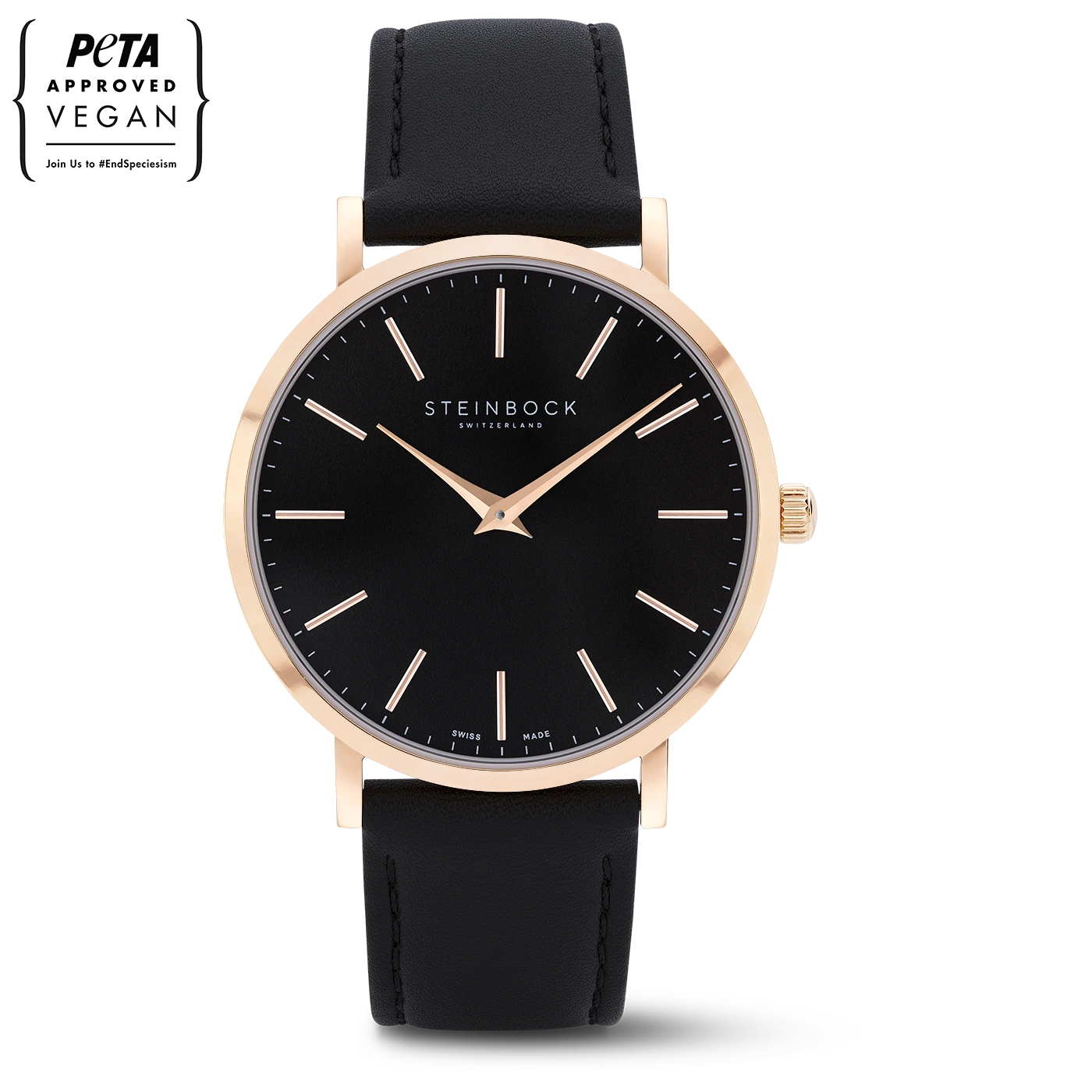 The IBEX | Rose Gold Schwarz Edition mit veganem Lederarmband (PETA zertifiziert)
